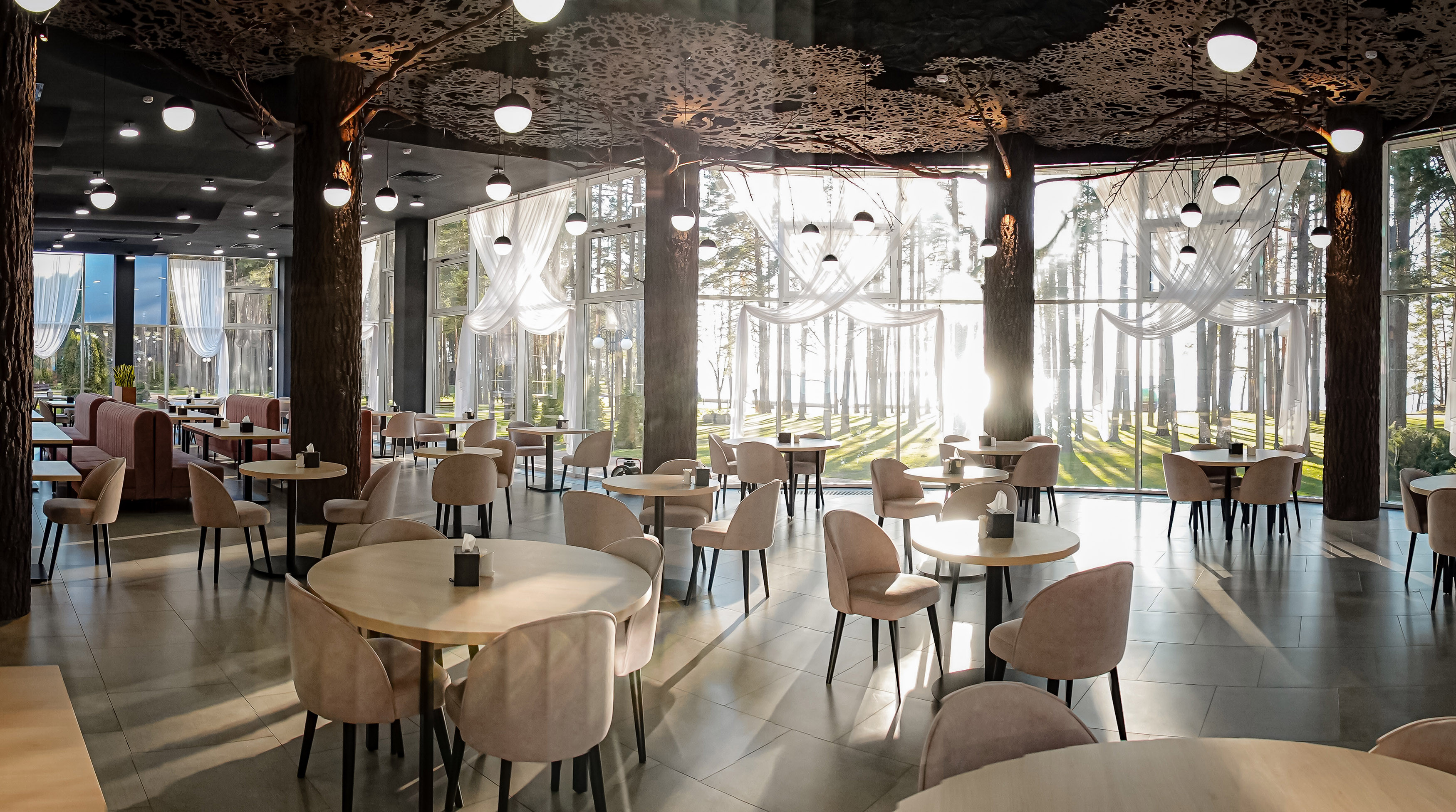 Проживание в уютных номерах с видом на озеро или сосновый лес