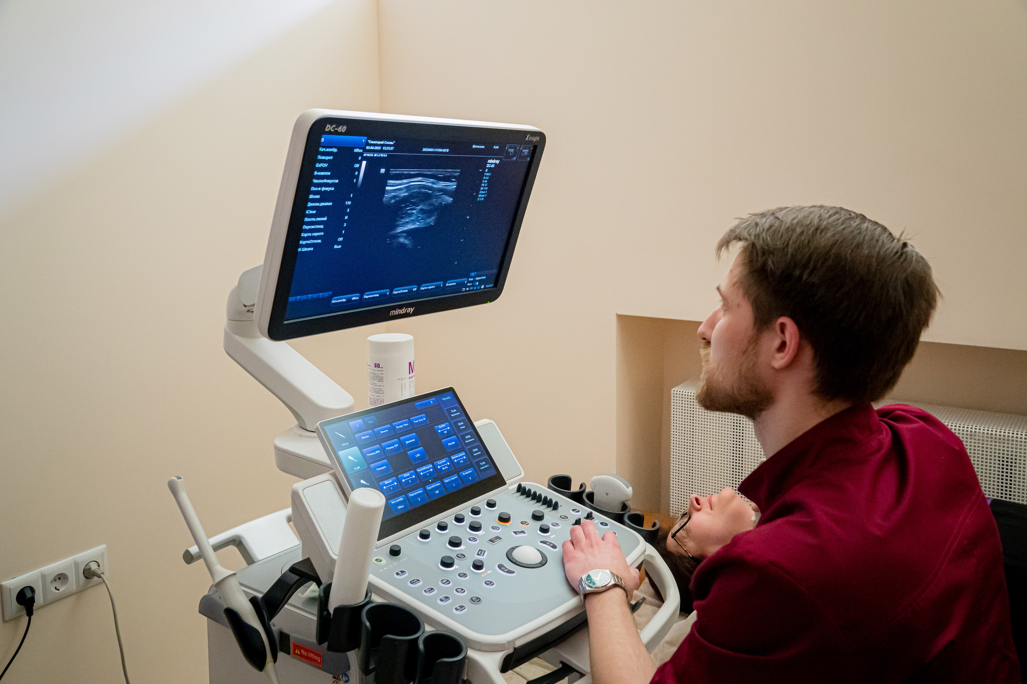 Мы осуществляем следующие виды ультразвуковой диагностики. Эхокардиография с доплерографией, брахиоцефальных сосудов, печени, желчного пузыря, поджелудочной железы, почек и надпочечников, мочевого пузыря, предстательной железы, матки и придатков, молочных желез с лимфатическими узлами, щитовидной железы с лимфатическими узлами, дуплексное сканирование артерий нижних конечностей, дуплексное сканирование вен нижних конечностей, УЗИ суставов (плечевой, локтевой, тазобедренный, коленный).